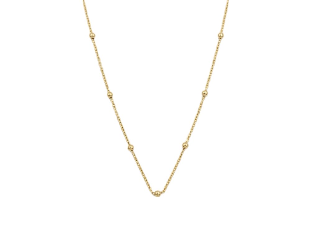 Jemné kuličky o velikosti 2 × 2 mm vytvářejí minimalistický a elegantní vzhled. Řetízek o tloušťce 1 mm má maximální délku 45 cm, takže se pohodlně přizpůsobí nošení.